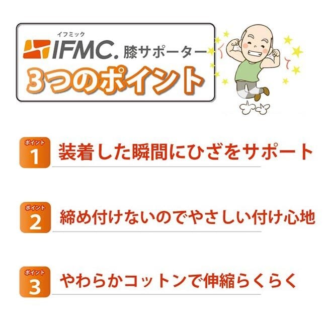 IFMC.イフミックは、肌の摩擦や締め付け感を防ぎながら、しっかりとひざをサポートする特許技術です。長時間の外出やスポーツ時など、快適なサポートが必要な場合に最適です。