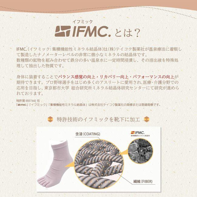 特許技術IFMC.イフミックを使用した5本指タイプ温泉靴下 追跡可能メール便配送(ポスト投函) ソックス SOCKS テイコク製薬社