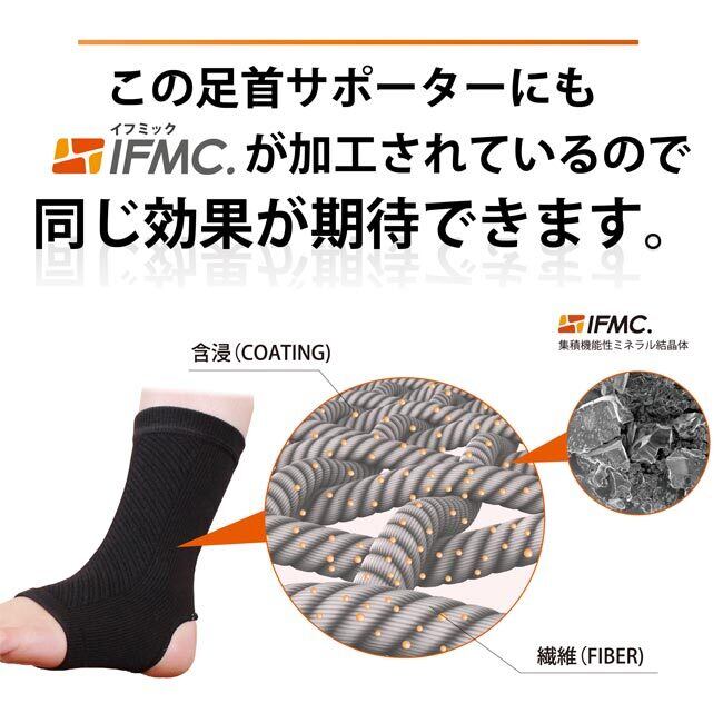 A:足首サポーターの繊維に、IFMC.(イフミック)を加工しているからです。身体に装着することでバランス感覚の向上・リカバリー向上・パフォーマンスの向上が期待できます。