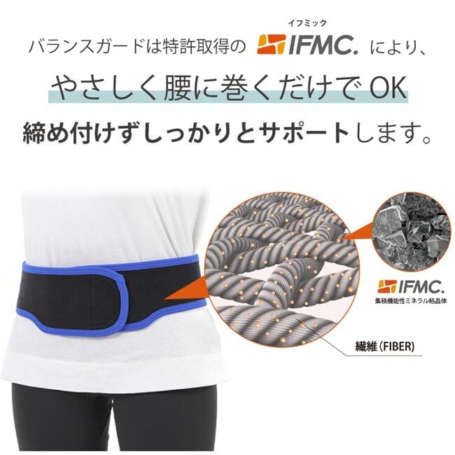 ■バランスガードは特許取得のIFMC.(イフミック)により。優しく腰に巻くだけでOK!!