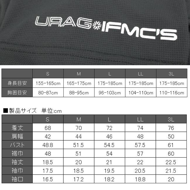 身長:S(155-165cm),M(165-175cm),L(175-185cm),LL(175-185cm),3L(175-185cm)